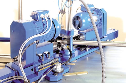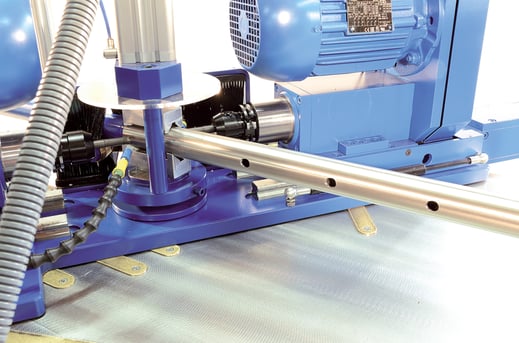 RBV version with two drive spindles. After tube or profile processing of rods (up to 12 m length) the exact cutting of tube or profile will be done with a saw module.