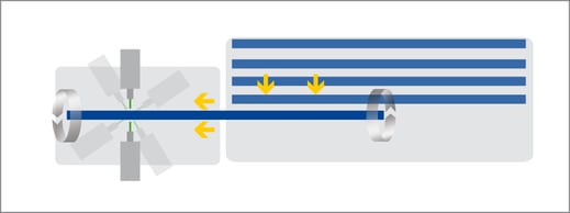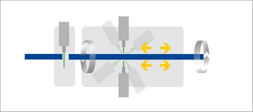 By the axial and rotating feed of the work piece the position of the drilling will be defined precisely.